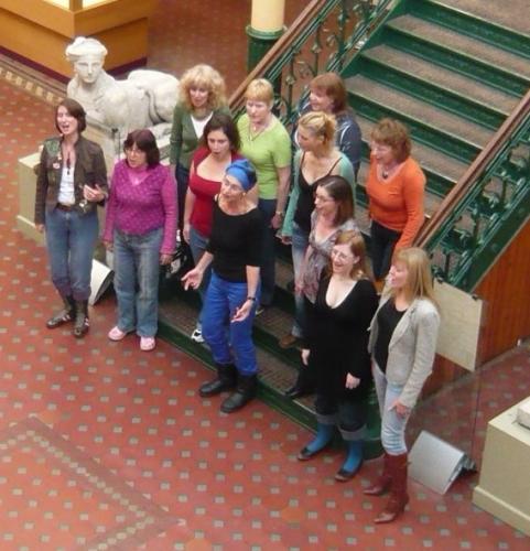 We sing only original arrangements; we need no equipment except our voices
